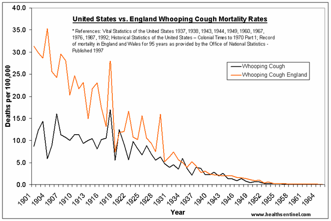 Niemals ein Wort davon, dass die Sterblichkeit bei Keuchhusten von alleine um 98% zurückgegangen ist, der Keuchhusten immer harmloser wurde und dann angefangen wurde, zu impfen.